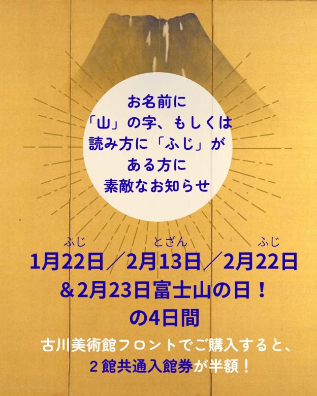 現在開催中の古川美術館富士山コレクション「名山巡礼2026~Happy Mountain」からのお知らせです。