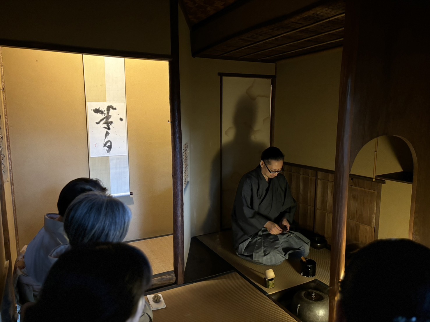 そしてお庭の知足庵では濃茶のお席を。席主は加藤亮太郎先生でした。