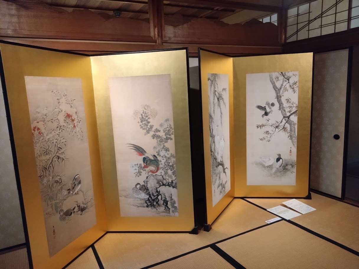 記念館では大桐の間の四季花鳥図屏風や、葵の間の茶道の道具の取り合わせが変わりました。
