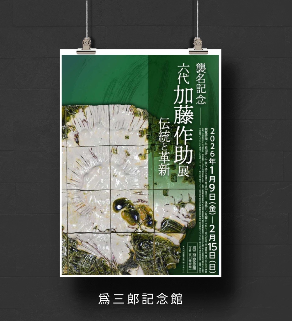 ② 爲三郎記念館:襲名記念「六代 加藤作助展 ―伝統と革新―」受け継がれる伝統の技と、現代の感性が融合する美の世界。 ゆったりとした時間が流れる数寄屋造りの空間で、新春のひとときをお過ごしください。
