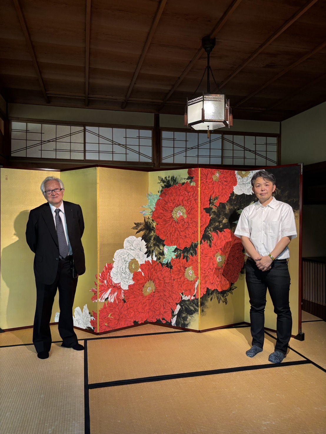 ただいま開催中の長谷川喜久日本画展に、日本芸術院会員の土屋禮一先生が同じく日本画家・林真先生と一緒にご来館下さいました。